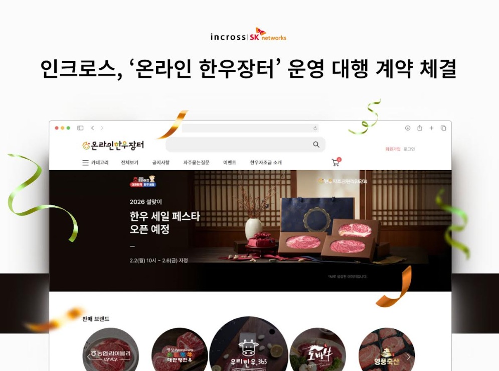 이번 계약에 따라 인크로스는 2026년 한 해 동안 온라인 한우장터의 전반적인 커머스 운영을 대행한다. 사이트 구축과 유지보수는 물론 기획전 전략 수립, 홍보 및 마케팅, 고객 관리까지 운영 전 과정을 담당한다. 온라인 한우장터는 생산자와 소비자를 직접 연결하는 유통 구조를 통해 유통 마진을 최소화하고 합리적인 가격으로 한우를 공급하기 위해 마련된 플랫폼이다.