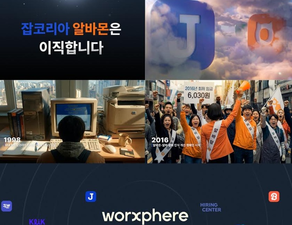 이번 캠페인은 ‘일자리’ 중심에서 ‘일’ 전반의 경험을 재설계하겠다는 웍스피어의 방향성을 담고 있으며, 잡코리아, 알바몬, 잡플래닛, 나인하이어 등 각 플랫폼이 하나의 기술 및 철학 아래 연결돼 있음을 상징적으로 보여준다.