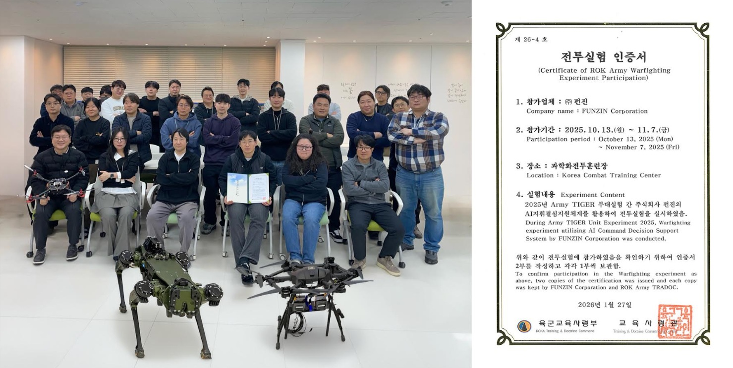 Kim Deuk-hwa, CEO of Fundin, said, “Obtaining the KWM combat experiment certification has great significance as it means that Korea’s only AI command and decision support system has been officially verified in a real-world environment,” adding, “It is a result that has set a milestone in the field of defense AI and proves that there is potential for even greater growth in the future.”