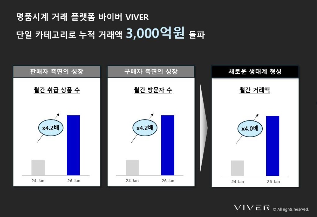 VIVER , a C2C-based luxury watch trading platform, announced on the 12th that it has surpassed KRW 300 billion in cumulative transaction volume. This achievement comes just three years and five months after launching its service as a single watch category in August 2022.