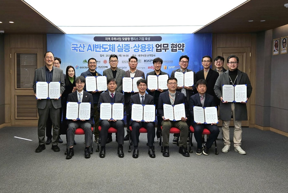 Under the agreement, Daegu City will be responsible for creating a collaborative environment for demonstration and providing policy support, while participating companies will collaborate to conduct customized AI semiconductor demonstrations for demand companies, link them with industrial sites, and secure references.