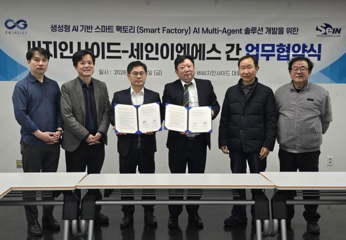 생성형 AI 솔루션 전문 기업 ㈜씨지인사이드(대표 박선춘)와 스마트팩토리 전문 기업 ㈜세인이엔에스(대표 신도철)가 RAG(검색 증강 생성)과 TAG(테이블 증강 생성) 기술을 결합한 차세대 스마트팩토리 AI 솔루션 사업화에 나선다. 양사는 생성형 AI 기반 스마트팩토리 AI 멀티 에이전트(Multi-Agent) 솔루션 상용화를 위한 업무협약(MOU)을 체결했다고 밝혔다.