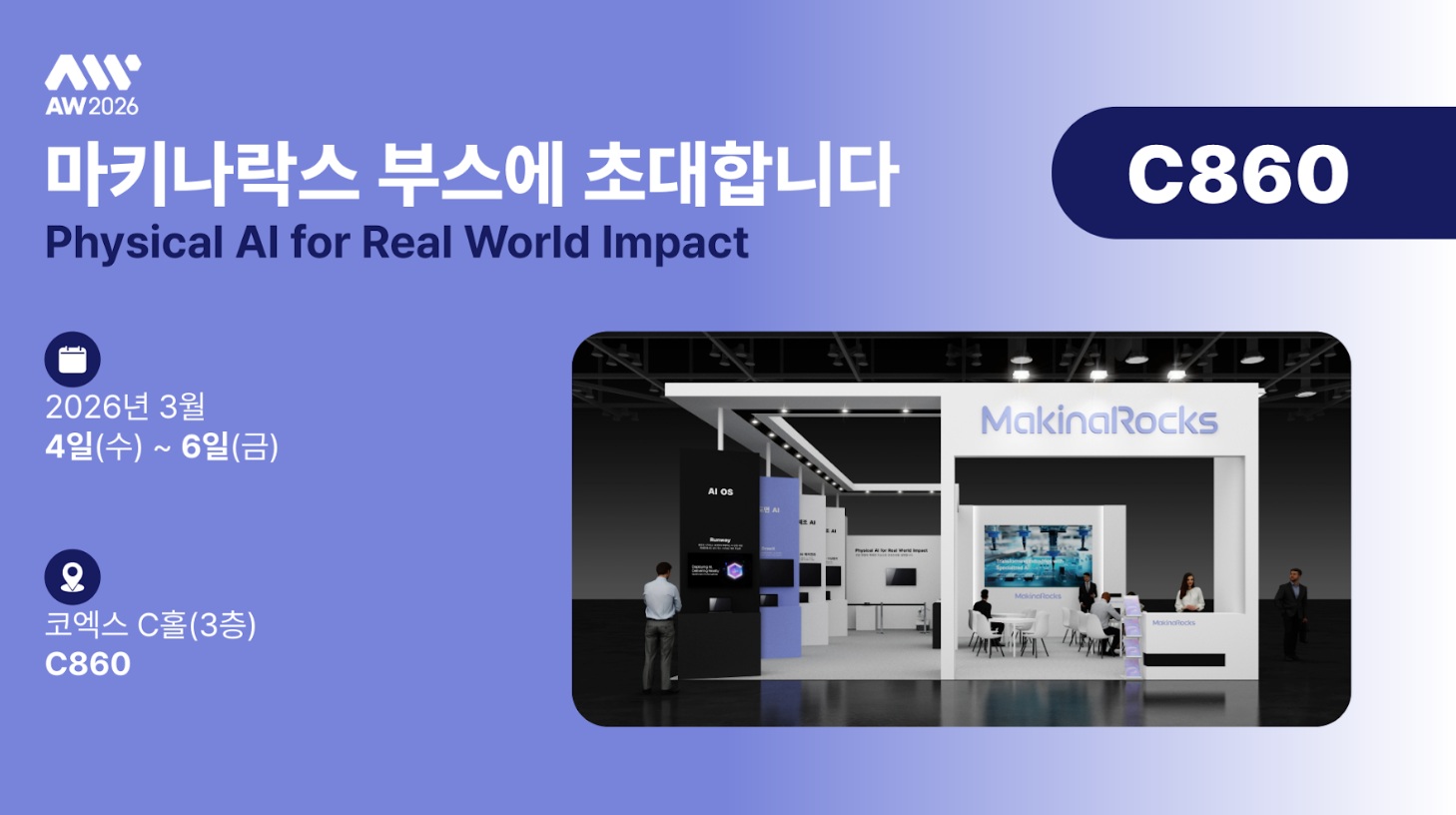 MakinaRocks (CEO Sungho Yoon), an industry-specific AI company, will participate in the 2026 Smart Factory & Automation Industry Exhibition (AW 2026), held at COEX in Seoul from March 4th to 6th. MakinaRocks will showcase AI agents and vertical solutions that support hyper-productivity in manufacturing. Its booth is located at C860, Hall C, 3rd floor, COEX.