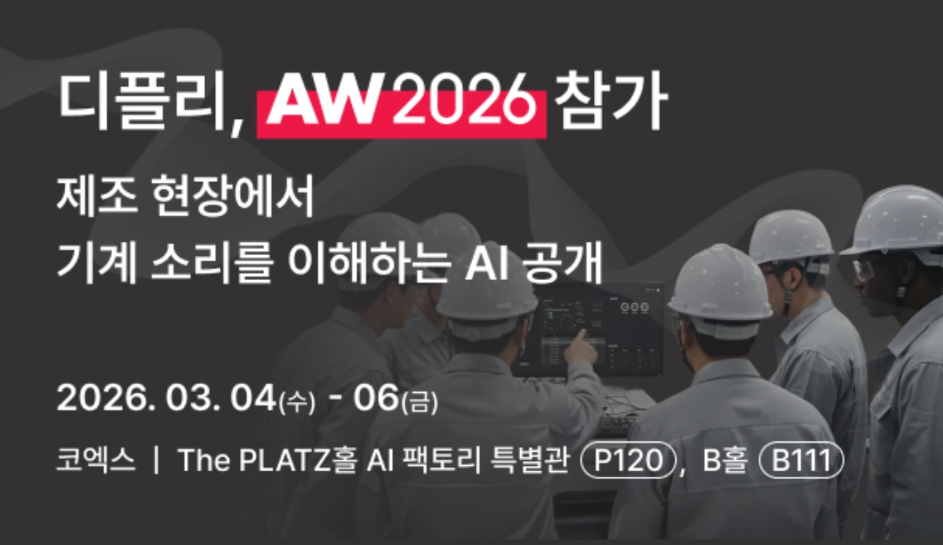음향 AI 솔루션 기업 디플리(대표 이수지)가 오는 3월 4일부터 6일까지 삼성동 코엑스에서 열리는 ‘오토메이션월드 2026(AW 2026)’에 참가한다고 24일 밝혔다. 올해 전시는 ‘2026 스마트공장·자동화산업전’으로 진행된다.