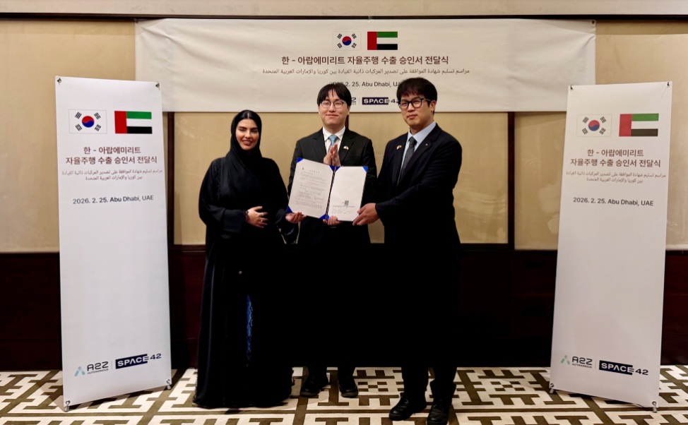 The transfer ceremony was a follow-up to the agreement on future industry cooperation signed during President Lee Jae-myung's state visit to the UAE last November. At the time, A2G established a joint venture for autonomous driving in the Middle East with UAE-based AI space tech company Space42, the first of its kind for a Korean company. This approval for the export of core national technologies was granted to the UAE following a declaration by the two leaders. With this, the joint venture has completed autonomous driving technology verification and institutional procedures, and is now entering the actual business execution phase.