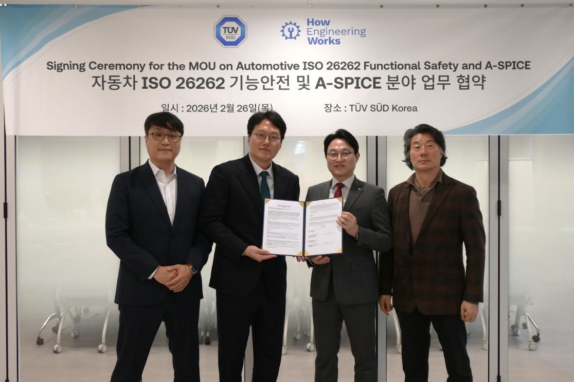 Global testing and certification body TÜV SÜD announced on the 27th that it has signed a memorandum of understanding (MOU) with How Engineering Works for cooperation in the fields of automotive functional safety and Automotive SPICE.