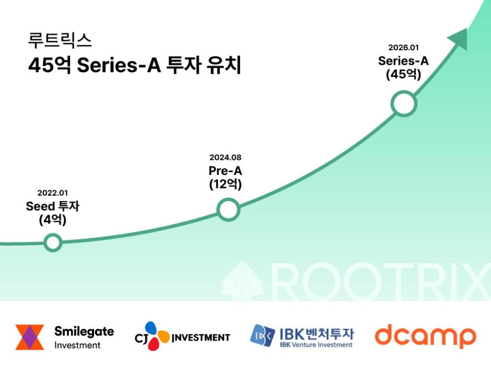 ROOTRIX, a tree distribution platform, announced on the 27th that it has secured 4.5 billion won in Series A funding. New investors included CJ Investment, IBK Industrial Bank of Korea, and the Korea Banking Association Youth Entrepreneurship Foundation (D-Camp), along with follow-up investment from existing investor Smilegate Investment.