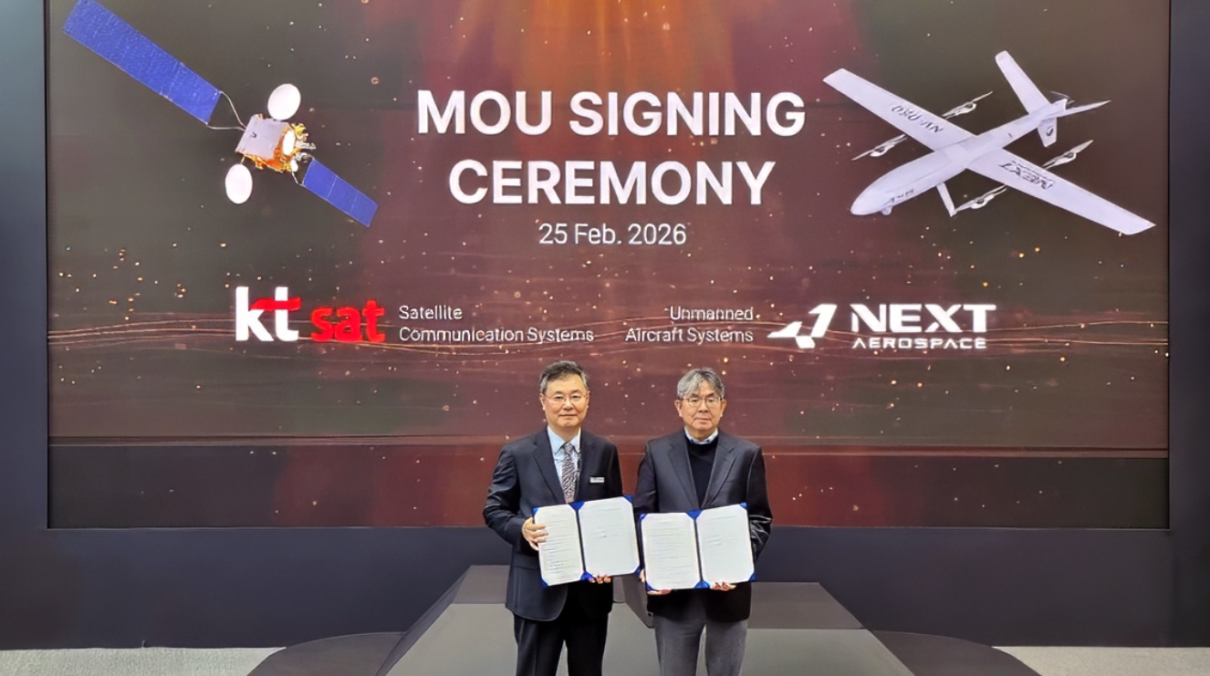 This agreement aims to secure a next-generation unmanned aerial vehicle (UAV) operation solution by combining Next Aerospace's aircraft system integration technology with KT SAT's global satellite communications infrastructure. Under the agreement, KT SAT will provide satellite communications infrastructure, support the design and verification of UAV communication linkage systems, identify joint business opportunities, and spearhead external sales efforts. Next Aerospace will be responsible for designing and manufacturing the UAV airframe, integrating systems, flight testing and performance verification, and obtaining domestic and international certifications.