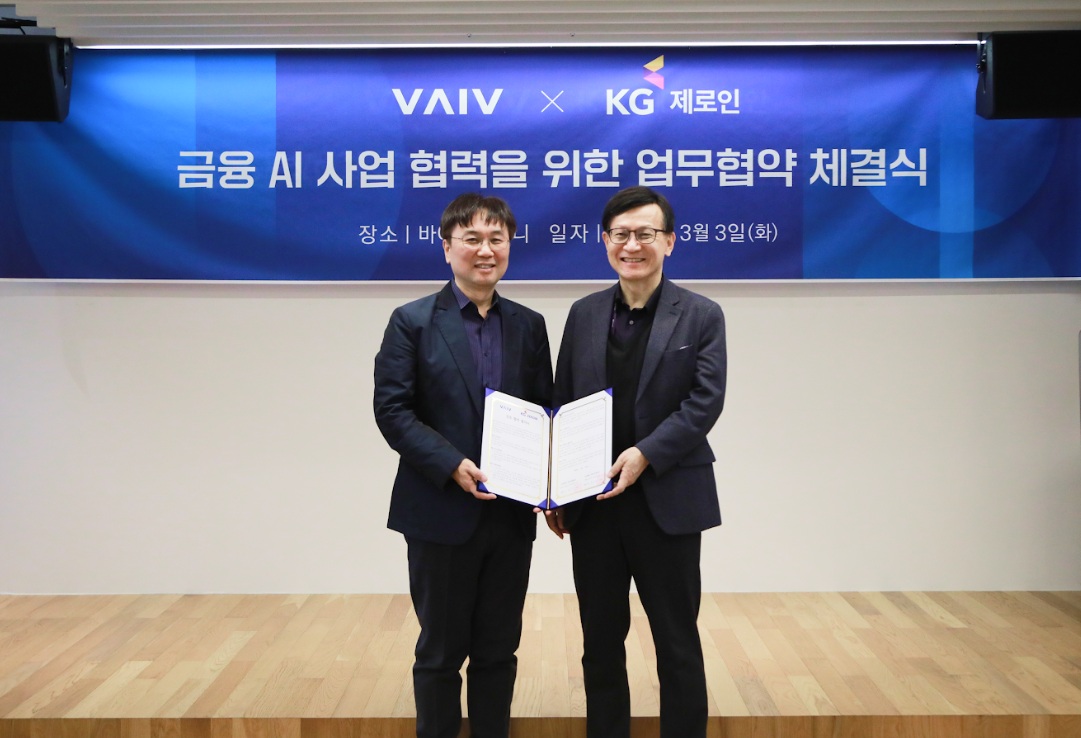 바이브컴퍼니와 KG제로인은 금융 산업의 인공지능 전환(AX) 시장 선점을 목표로 업무협약(MOU)을 체결했다고 밝혔다.