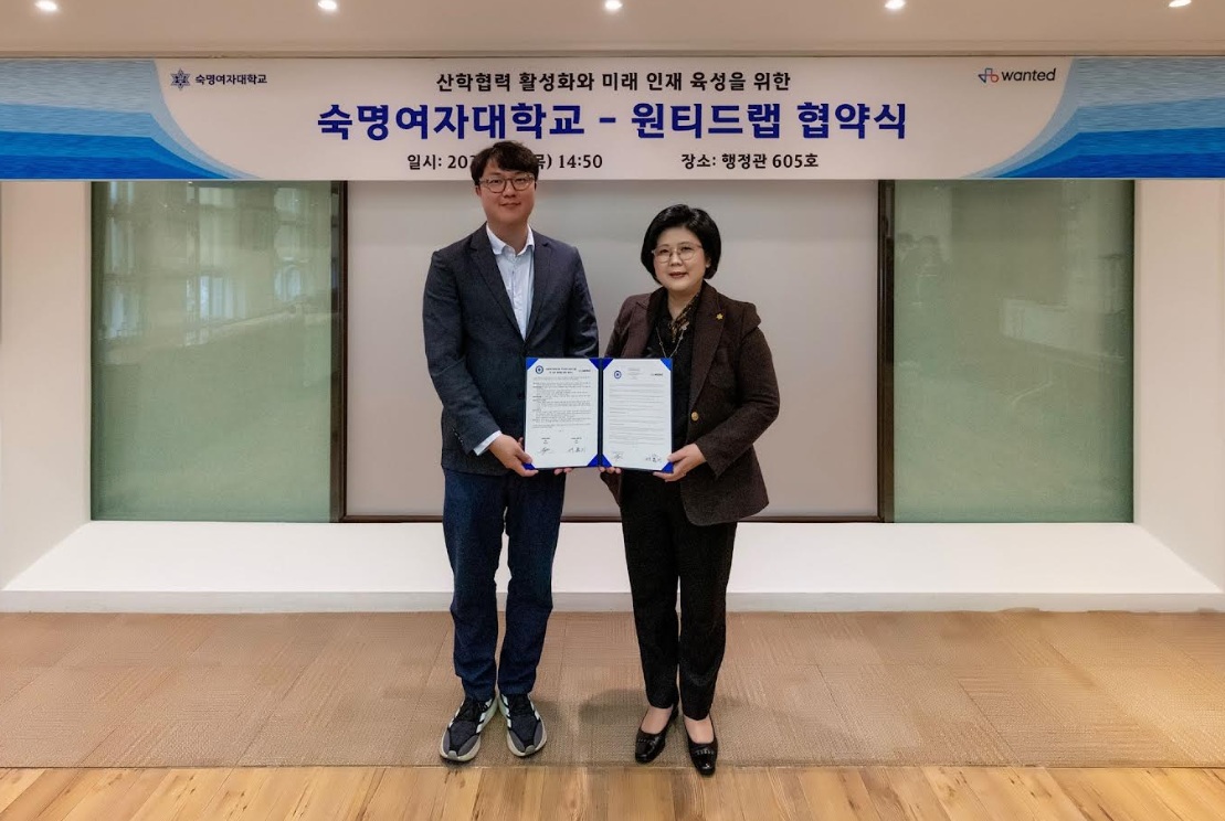 Wanted Lab (CEO Bok-ki Lee) announced on March 5th that it signed a Memorandum of Understanding (MOU) with Sookmyung Women's University (President Si-yeon Moon ) to foster AI-based talent. This agreement aims to foster practical AI talent by connecting universities and industries, focusing on combining Wanted Lab's AX (AI Transformation) business capabilities with the systematic career support infrastructure of Sookmyung Women's University's University Job Plus Center.