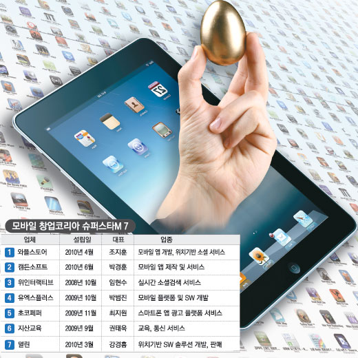 7개 모바일 벤처기업은 오는 19일 서울 플라자호텔에서 개최되는 오픈 IR 경연에서 회사 소개와 함께 공개 투자 유치를 벌인다. 2011년의 슈퍼스타M은 어떤 팀이 될지 귀추가 주목된다.