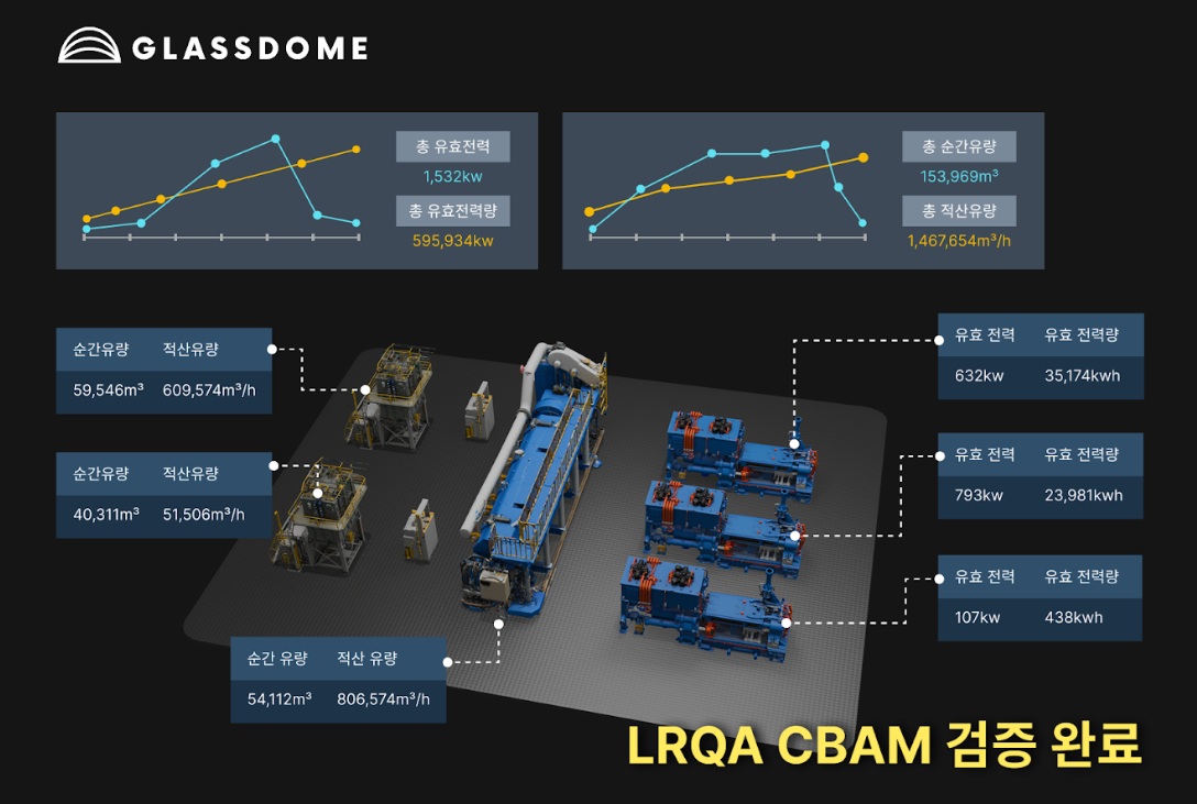 이번 프로젝트를 통해 글래스돔은 알루스, 세광하이테크, 한국분말야금 등 철강·알루미늄 제조기업 3곳의 공장 에너지 데이터를 실측 기반으로 수집하는 계측 인프라와 CBAM MRV 플랫폼을 구축했다. 수집된 데이터와 산정 결과는 로이드인증원(LRQA)의 검증을 거쳤으며, 로이드인증원은 EU ETS 검증기관으로 향후 CBAM 공인 검증기관으로 등록될 예정이다.