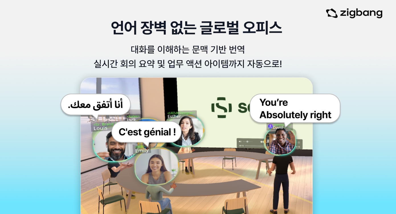Zigbang intègre des fonctionnalités de reconnaissance vocale multilingues en temps réel basées sur l'IA et de traduction à Virtual Office Soma