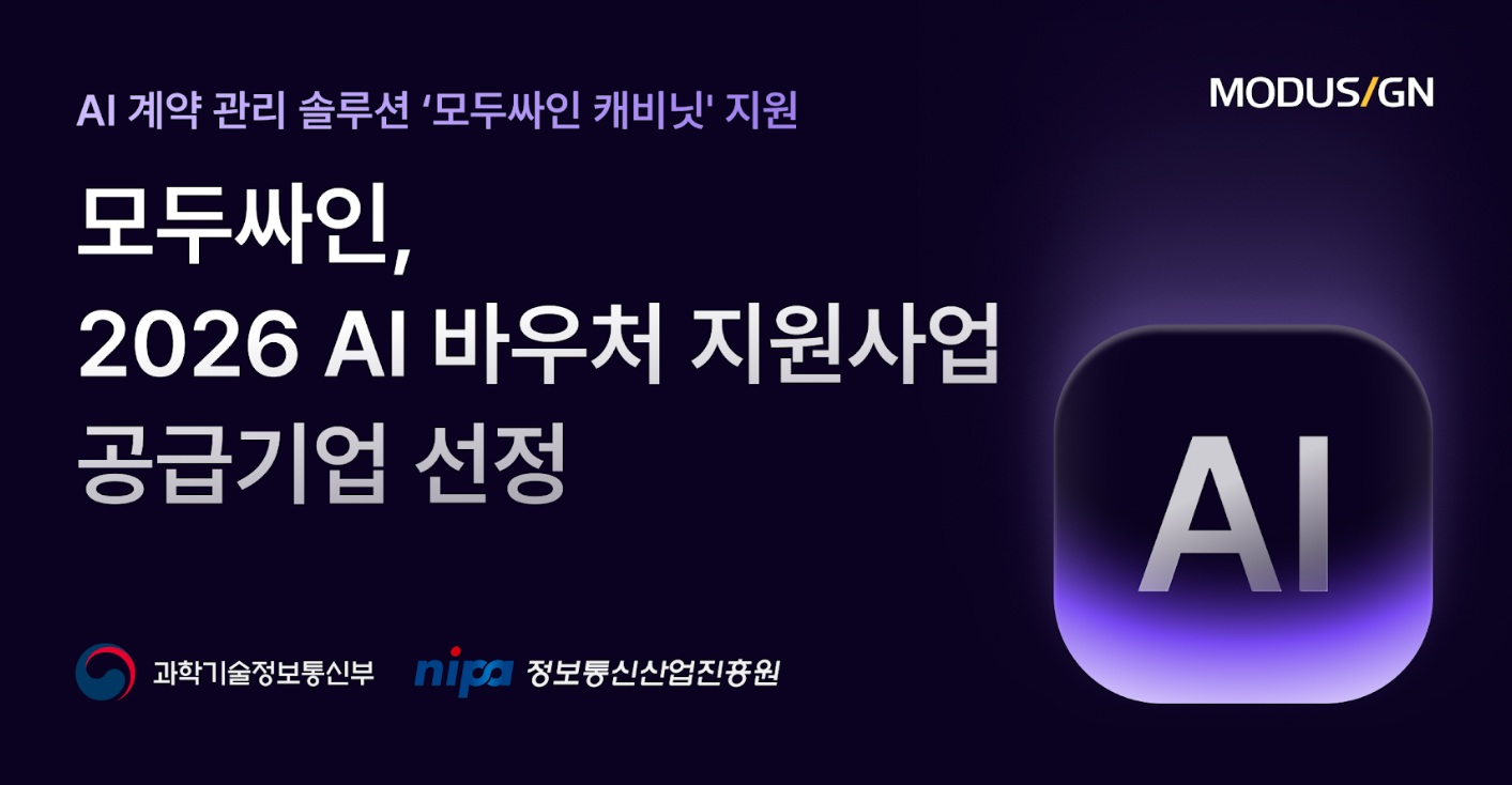 ModuSign, an AI-based contract platform company, has been selected as a supplier for the '2026 AI Voucher Support Project' promoted by the Ministry of Science and ICT and the National Information & Communication Technology Promotion Agency (NIPA).