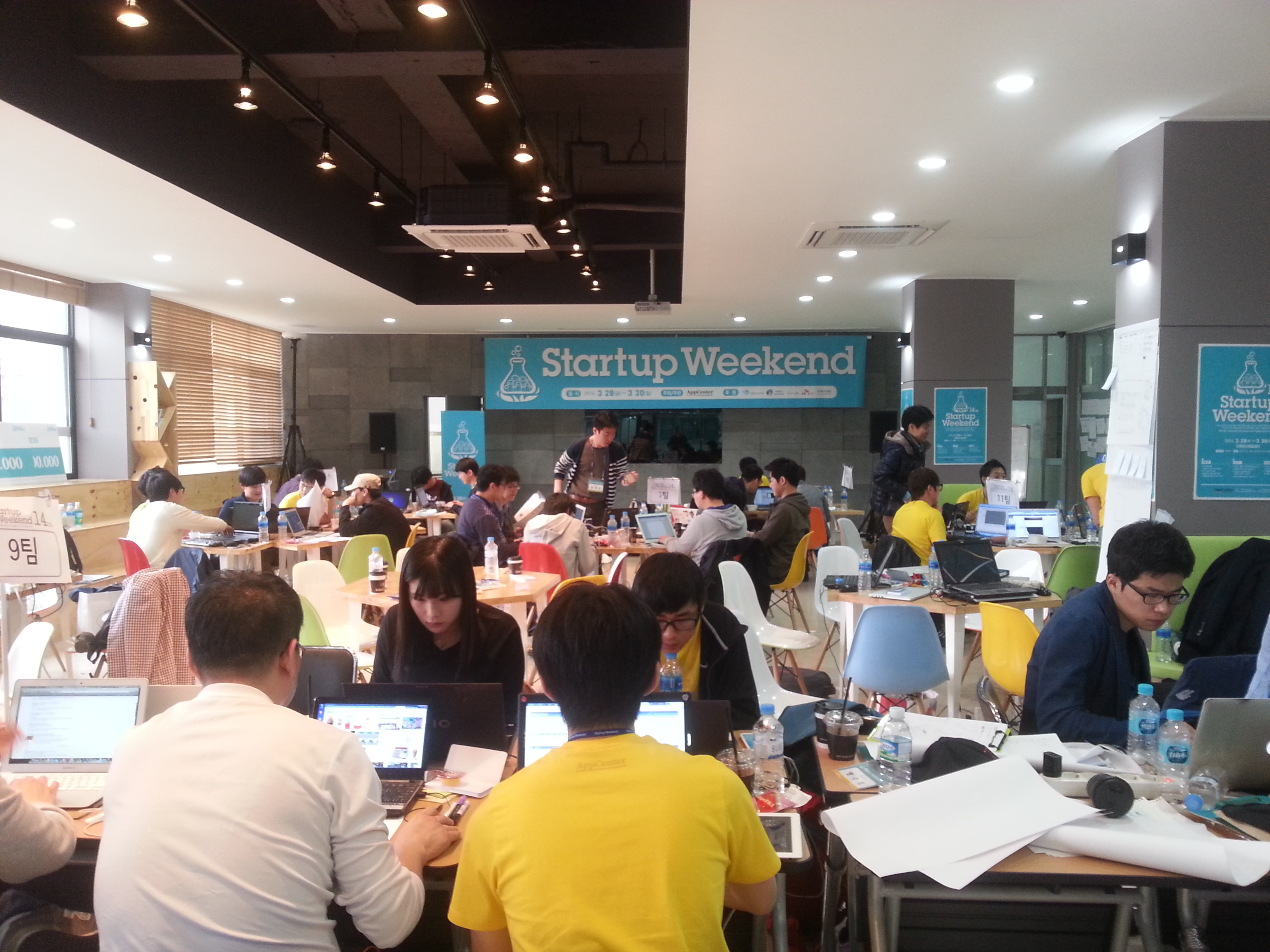 사람들이 주말에 이토록 고생하고 있는 이유는 단순하다. 이들은 스타트업 위크엔드(Startup Weekend)에 참가한 참여자들이다. 스타트업 위크엔드란, 2박 3일 동안 아이디어 발표부터 아이템 런칭까지 창업과 관련된 모든 활동들을 경험해볼 수 있는 행사이다. 원래 창업할 때에는 각 분야에 맞는 사람들을 직접 모아서 그들과 회의를 하며 의견을 조율해야한다. 이 행사의 이점은 이 같은 과정을 2박 3일이라는 짧은 시간 안에 압축적으로 경험해볼 수 있다는 것이다. 대신 2박 3일 마지막 날까지 아이템을 런칭해야하기 때문에 사람들은 주말 내내 뜨거운 논쟁을 계속한다. 짧은 기간 동안 최대한 좋은 아이템을 만들어내기 위해 밤을 새며 의견을 펼치고, 논쟁하며, 그것을 조정해내는 과정이 필요한 것이다.