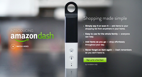 아마존이 내놓은 대시(Amazon Dash)는 그런 일상에서 무척 유용하면서도 쉽게 물건을 고르고 주문할 수 있게 해주는 재미있는 장치입니다. 아마존 대시는 와이파이(WiFi) 무선 네트웍이 가능한 곳에서 사용할 수 있는 기기로 바코드 스캐너를 통한 제품의 품번 스캔과 음성 인식을 통한 제품 선택을 지원하는 장치입니다. 아마존 프레시(Amazon Fresh)라는 서비스를 이용하는 고객들에 한정되긴 하지만 아마존 사용자 계정과 연동되며 바코드 스캔, 음성 인식으로 식별된 제품은 자동으로 장바구니에 담겨 주문할 수 있게 해줍니다.