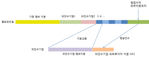 지속적인 인수로 회사의 가치가 커지면 후발 피인수기업은 점점 작은 지분을 가져가게 되면서 인수에 가속도를 붙일 수 있게 되고 한 편으로는 커진 회사 가치로 외부자본도 조달할 수 있게 된다.
