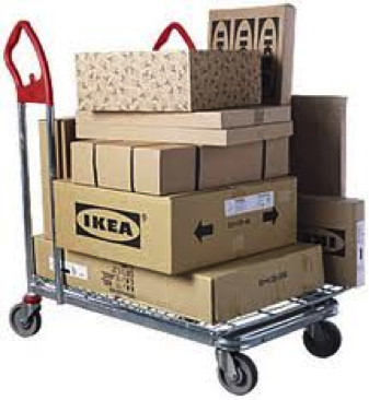 이케아의 플랫 팩(Flat Pack) 포장. DIY를 통하여 가격 감소는 물론 매장내 공간효율성 향상까지 가능하게 해 준다]