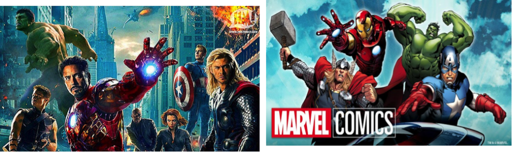 대표적인 예 중에 하나는 미국의 만화책 회사였던 마블 코믹스 (Marvel Comics) 이다. 마블 코믹스는 수 많은 만화 캐릭터를 보유하고 있는데, 대표적으로는 스파이더맨, X맨, 캡틴 아메리카(Captain America), 토르(Thor), 아이언맨(Ironman), 헐크(Hulk) 등이 있다. 얼핏 듣기에도 우리에게 너무나 친숙한 캐릭터 들이다. 하지만 이들이 친숙하게 들리는 이유 중에 하나는 이 캐릭터들을 기반으로 해서 제작된 영화들이 있기 때문이다.