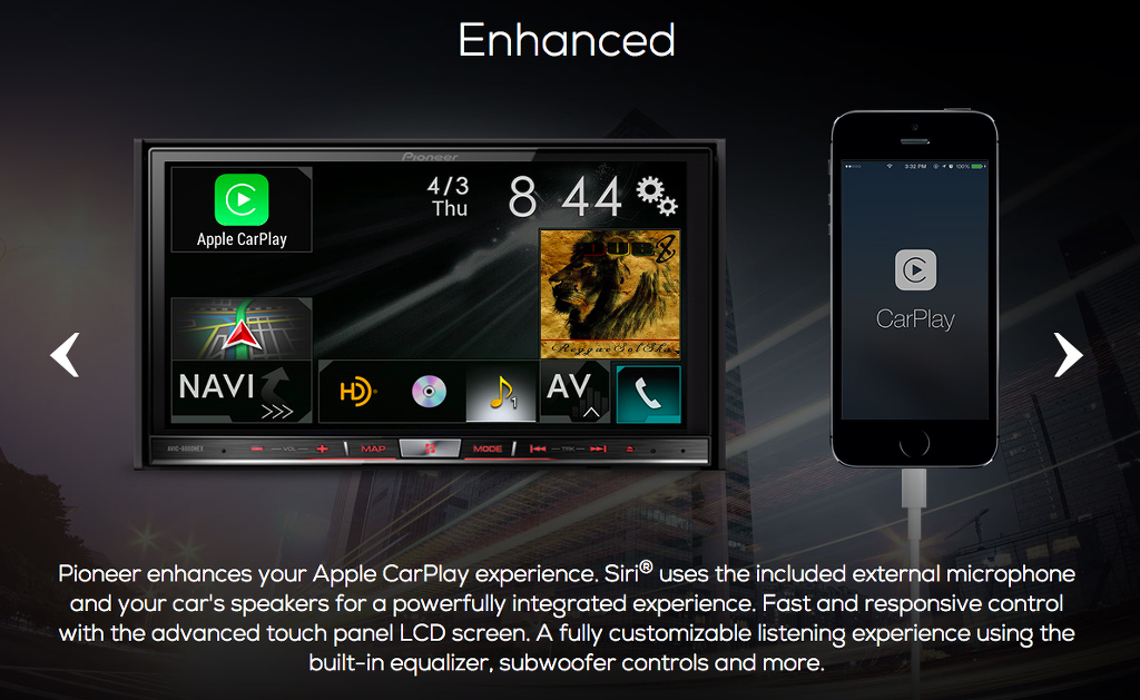 많은 오너 드라이버들의 아쉬움과 기대에 부응이라도 하려는 깜짝쇼였을까요? 애플은 자동차용 하이파이 기기, 빌트인 디바이스를 제조하는 파이오니어(Pioneer)와 함께 카플레이가 탑재된 별도의 기기를 공개했습니다. 파이오니어의 기기는 차량 튜닝을 통해서 빌트인 형태로 이용할 수도 있고 별도의 디스플레이처럼 차량에 설치하는 방법도 가능한 기기입니다. 애플 카플레이 이전부터 별도의 네비게이션, 멀티미디어 기능등을 탑재하여 시장에서 좋은 반응을 얻고 있었습니다.
