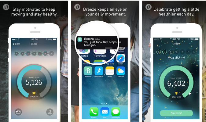 핏빗과 같은 피트니스 트레커는 이런 고민을 해결하고자 핏빗 플렉스와 같은 단순한 기기 이외에도 핏빗 포스와 같이 조그만 디스플레이를 탑재한 기기들을 최근 많이 내놓고 있습니다. 사용자로 하여금 스마트 폰과 피트니스 트레커를 같이 가지고 다니면서 스스로 데이터를 확인해야 하는 불편함 대신 언제든 쉽게 정보를 확인할 수 있도록 해준 것이지요. 이같은 시도는 어플리케이션에서도 나타나고 있습니다. 런키퍼(RunKeeper)를 개발한 피트니스 키퍼(Fitness Keeper)사에서는 새로운 앱인 브리즈(Breeze)를 런칭하면서 일상속에 자연스럽게 녹아들어가는 방법을 많이 고민한 듯 합니다.
