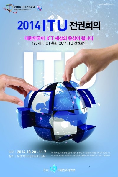 ITU전권회의. ITU란 UN산하에 있는 정보통신 분야의 최고 전문기구이며 전권회의란 이 기구의 최고 의사결정 기구로, UN답게 각국의 정보통신관련의 현안들이 논의 되고 결정되는 것입니다. 4년마다 열리는 이 회의는 ICT(인터넷 정보통신 분야)의 올림픽이라고 홍보되어집니다.