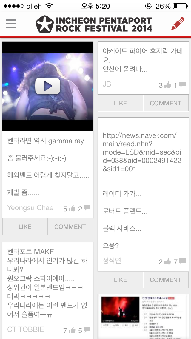 JJS 미디어는 현재 모든 사람이 즐겁게 음악을 즐길 수 있도록 노력중이다. JJS 미디어가 운영하고 있는 3개의 앱은 각각 다른 역할을 하지만 서로 유기적으로 연결되어 있다. 현재 JJS 미디어는 ‘인천 펜타포트 락 페스티발 2014’의 앱을 운영하고 있다. 앱 안에서 유저들은 각자 좋아하는 아티스트에 대한 이야기를 나누고, 정보를 업데이트 한다. 그리고 페스티발에 좋아하는 아티스트를 라인업에 포함하려면 마이 뮤직 테이스트 사이트로 이동하게 된다. 미로니에서는 가까운 친구의 음악 선곡을 알 수 있어 공감대를 형성할 수 있는 플랫폼을 제공한다.