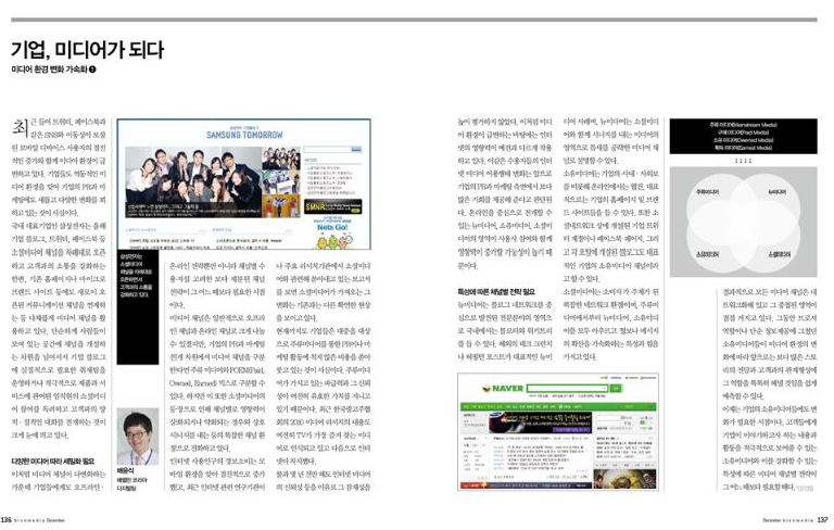 최근 들어 트위터, 페이스북과 같은 SNS와 이동성이 보장된 모바일 디바이스 사용자의 점진적인 증가와 함께 미디어 환경이 급변하고 있다. 이에 발맞추어 기업들도 역동적인 미디어 환경을 맞아 기업의 PR과 마케팅에도 새롭고 다양한 변화를 꾀하고 있는 것이 사실이다.