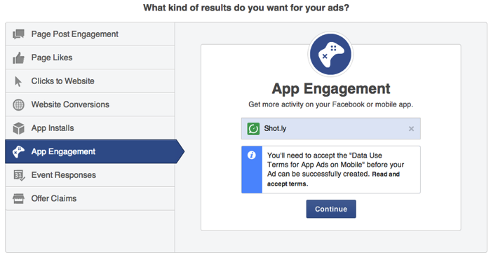 페이스북이 이번에 선보인 광고는 앱을 설치하는 것뿐만 아니라 이미 앱을 설치한 사람들에게 새로운 기능이나 컨텐츠 등을 보여줘서 앱 내 활동을 좀 더 활발하게 유도할 수 있는 참여유도 광고 상품(Mobile Ads for App Engagement)입니다.