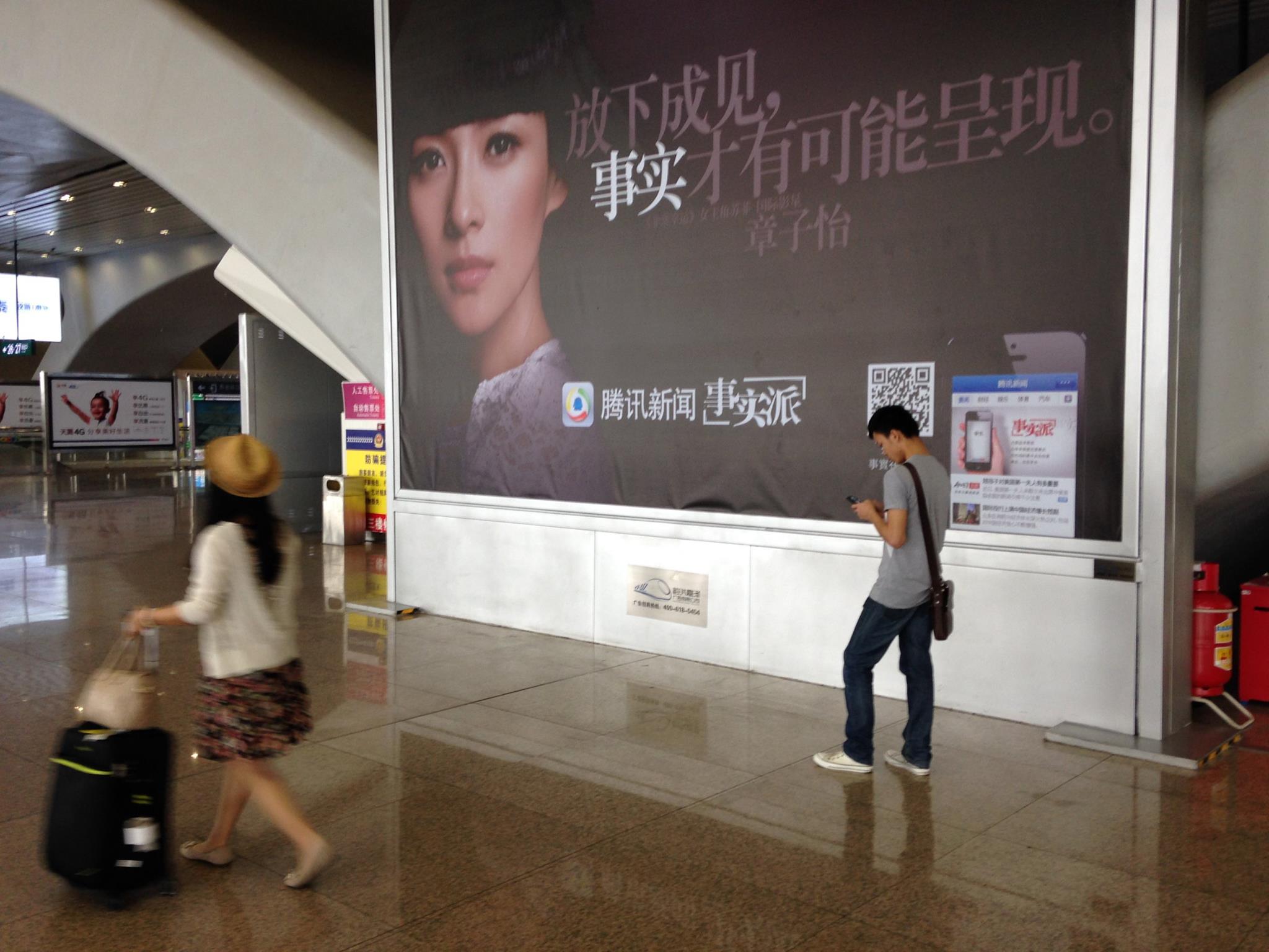 광저우 역에서 ‘텅쉰‘의 모바일 뉴스 서비스 광고판을 마주했다. 광고 모델은 우리가 잘 아는 ‘장쯔이’다. 네이버 뉴스와 같은 개념으로 보인다. 실제도 그렇고. 그런데 광고까지 한다. 최근 중국에서는 뉴스 서비스가 인기란다. 중국 인들도 뉴스에 대한 갈망이 늘었다는 얘기다. 중국 정부가 어찌 컨트롤 할지 관심이 모아진다.