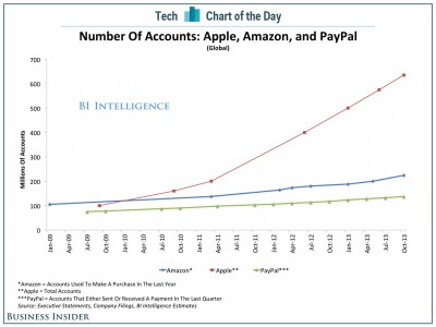 [애플, 아마존, 페이팔의 등록된 신용카드 계좌 수 비교 ]