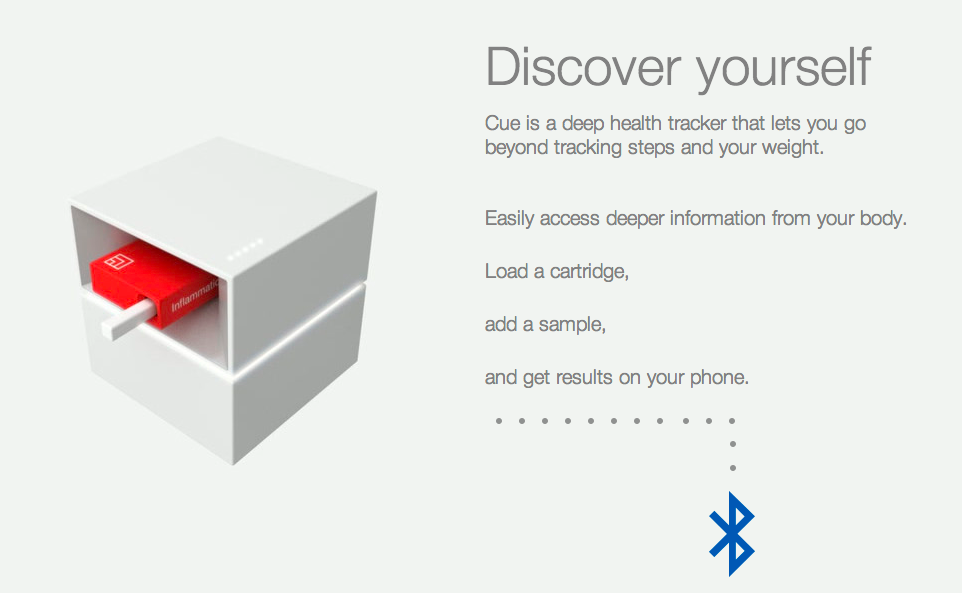 큐는 간단히 보면 개인들이 직접 해볼 수 있는 몇 가지 생체에 대한 테스트를 패키지화하여 쉽게 이용할 수 있게 해주면서 동시에 스마트 기기와의 연동을 통해 영양소의 섭취를 가이드 한다거나 체력에 대한 보강 스케쥴을 잡아주고 네트워크에 연결된 지인들에게 필요한 정보를 송수신 해주는 역할을 하게 됩니다. 물론 개인이 테스트 가능한 의학적인 진단의 범위는 국가별로 법적으로 다를 수 있습니다. 최근 논란이 많은 원격의료 등과 관련해서도 소구점이 많을 것 같습니다. 이 글에서 언급하는 내용들 역시 그런 관점에서 제한적으로 보실 필요가 있음을 먼저 알려드립니다.