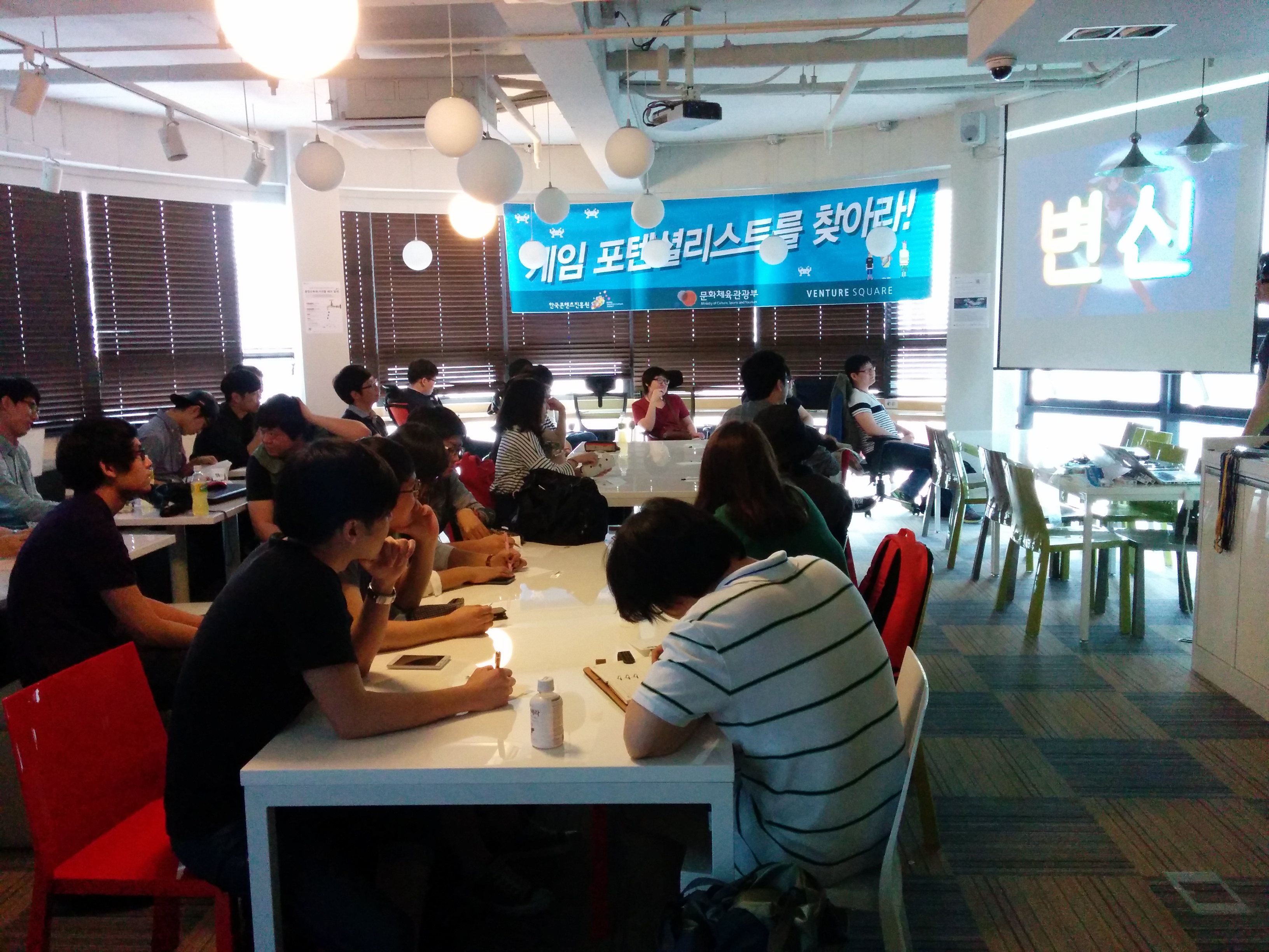 5월 24일부터 25일까지 게임 산업의 차세대 주자들이 공덕에 모였다. 총 38명이 참가한 이번 ‘게임 포텐셜리스트를 찾아라! 최종 선발 부트캠프’는 콘텐츠 특화 인재를 선발하여 육성하는 사업인 2014 창의인재 동반사업의 멘티 선발 과정으로, ‘잠재력’이 있는 인재들을 육성하겠다는 취지로 진행되었다.