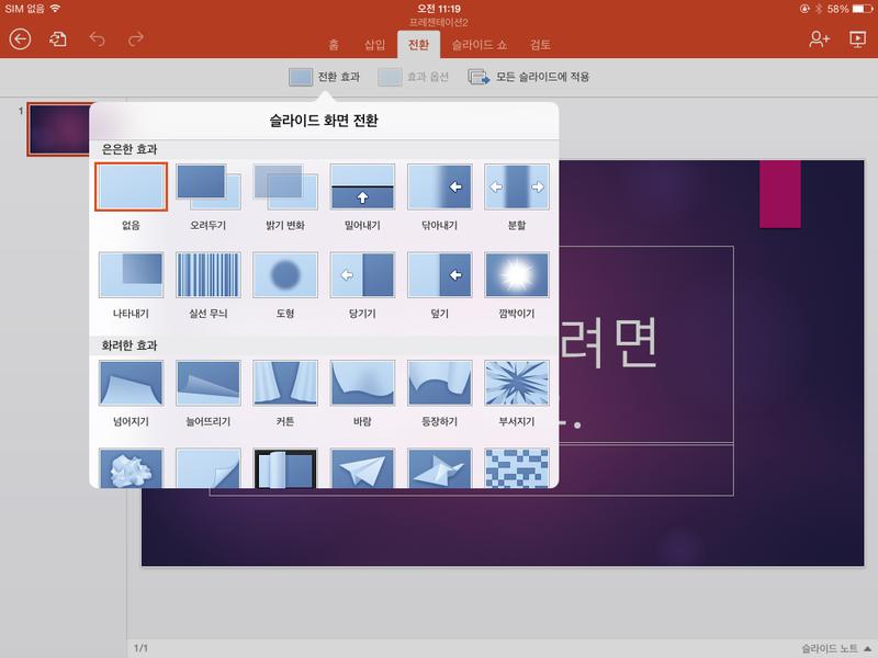 A. 표 효과는 대부분 호환된다. PC에서 할 수 있는 작업은 대부분 아이패드에서도 할 수 있다. 다만 일부 표는 PPT 파일이 아닌 JPG로 변환해서 인식하니 주의해야 한다. 프레젠테이션을 진행하는 것은 문제가 없지만, 수정하는 것은 불가능하다.