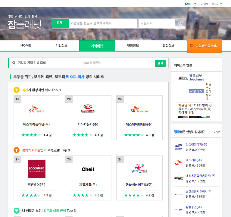 직장평가 사이트 잡플래닛에 대한 소비자들의 호응이 심상치않다. 지난 4월 18일 문을 연 이후 약 한달여 만에 대기업을 포함한 8천여 개 이상의 기업 정보와 2만여 개의 실질 후기를 제공, 누적 페이지 뷰 700백만을 돌파했다. 특히 2만여 개의 후기는 해당 회사에 다니고 있는 임직원들이 익명으로 작성한 것으로 기업에 대한 생생한 정보를 얻을 수 있어 이직을 염두에 둔 직장인들 사이에서 화제가 되고 있다.