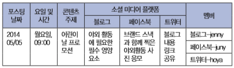 l 콘텐츠 마케팅 활동의 유연성 확보: 소셜 미디어 대화의 주제나 흐름은 빠르게 변하기 때문에, 타겟 공중들의 관심을 매번 사전 계획에 담는다는 것은 힘들다. 캘린더 운영을 통해 매월 지향해야 하는 활동의 주제를 유지함과 동시에, 순간적으로 타겟 공중들의 관심을 이끌어내는 내용도 담길 수 있도록 마케팅 활동의 유연성을 확보하는데 활용해야 한다.
