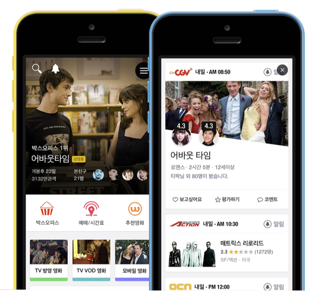 우선 사람들이 영화관에서 가장 영화를 많이 본다는 것에 착안, 영화관 관련 기능을 대폭 강화했다. 특정 지역의 주변 극장 시간표를 모아서 한 눈에 비교할 수 있다.
