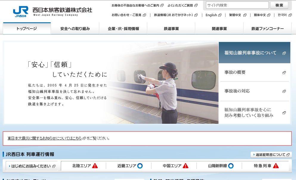 만약 우리 회사가 저지른 인재에 대해 사과 한 부끄러운 기록을 홈페이지에 1년이라도 남겨 놓자 하면 어떤 내부 반응이 예상될지 한번 상상 해 보자. CEO가 “그것 참 좋은 생각입니다. 그렇게 해서라도 우리의 개선과 재발방지 각오를 안팎으로 강조합시다. 우리 모두 잊으면 안 되니까!” 하실까? 아니면 혹시 “그게 무슨 좋은 이야기라고 그렇게 오랫동안 망신을 감수하나? 관심이 잦아 들면 바로 홈페이지에 올렸던 사과 팝업을 내려 버리도록 하세요”하는 현실적인 지시를 하시지는 않을까? 분명히 JR-West는 달랐다.