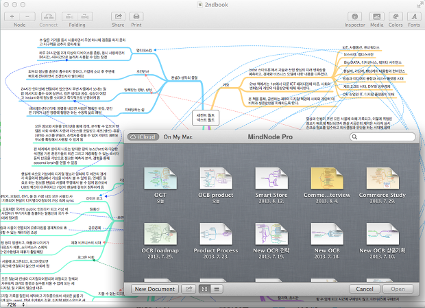 유료인 점이 아쉽지만 아이폰, 아이패드, 맥을 모두 지원하기 때문에 애플 디바이스를 제게는 이만한 마인드맵 프로그램이 없습니다. 노트북이나 맥에서 마인드 노드를 이용해서 생각을 정리합니다.