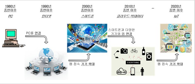 5차 ICT 산업 혁명은 IoT(사물인터넷)이 만들어 갈 것으로 전망임. ICT 4차 산업혁명이 클라우드와 빅데이터으로 더 많은 기기들이 연결되는 기반이 되는 서비스로, 그 다음은 그 기반을 바탕으로 더 많은 기기들이 연결되는 기기 시대 즉 하드웨어가 중심이 될 것으로 예상됨.