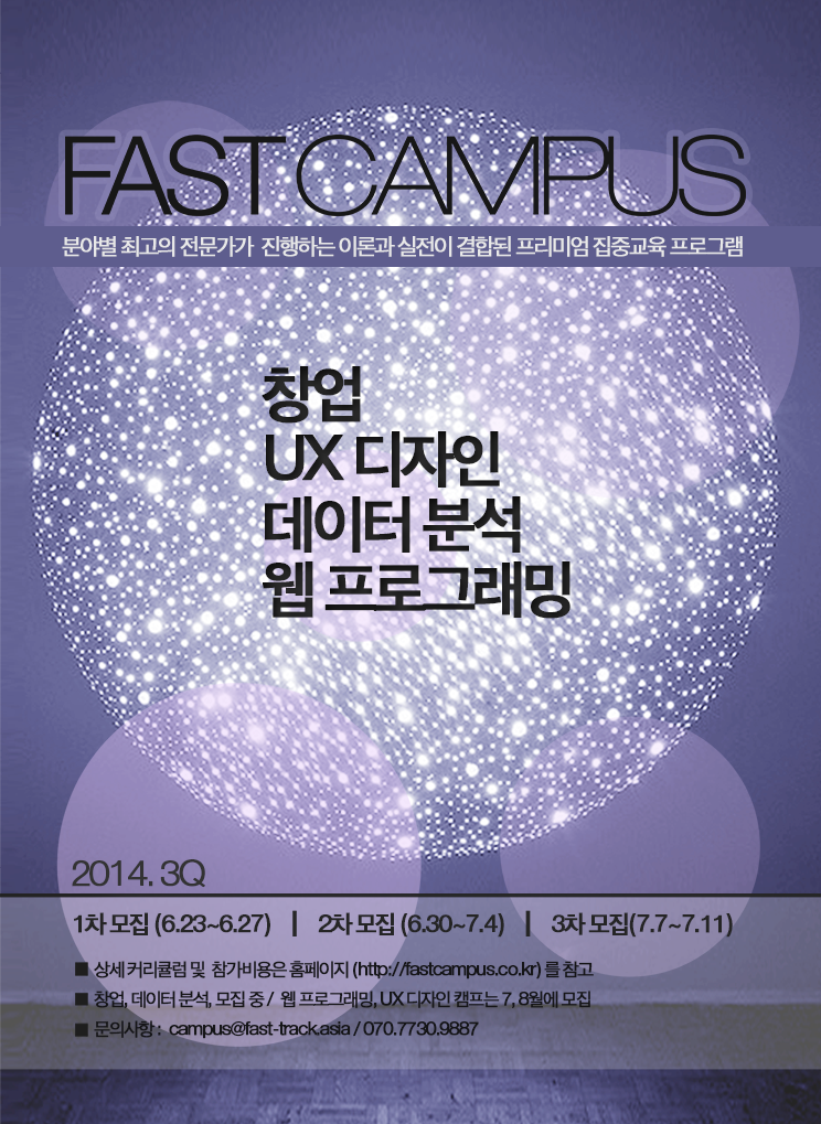 패스트트랙아시아의 프리미엄 창업교육 프로그램 ‘패스트캠퍼스’가 CAMP(캠프) 3분기 모집을 시작한다고 23일 밝혔다.
