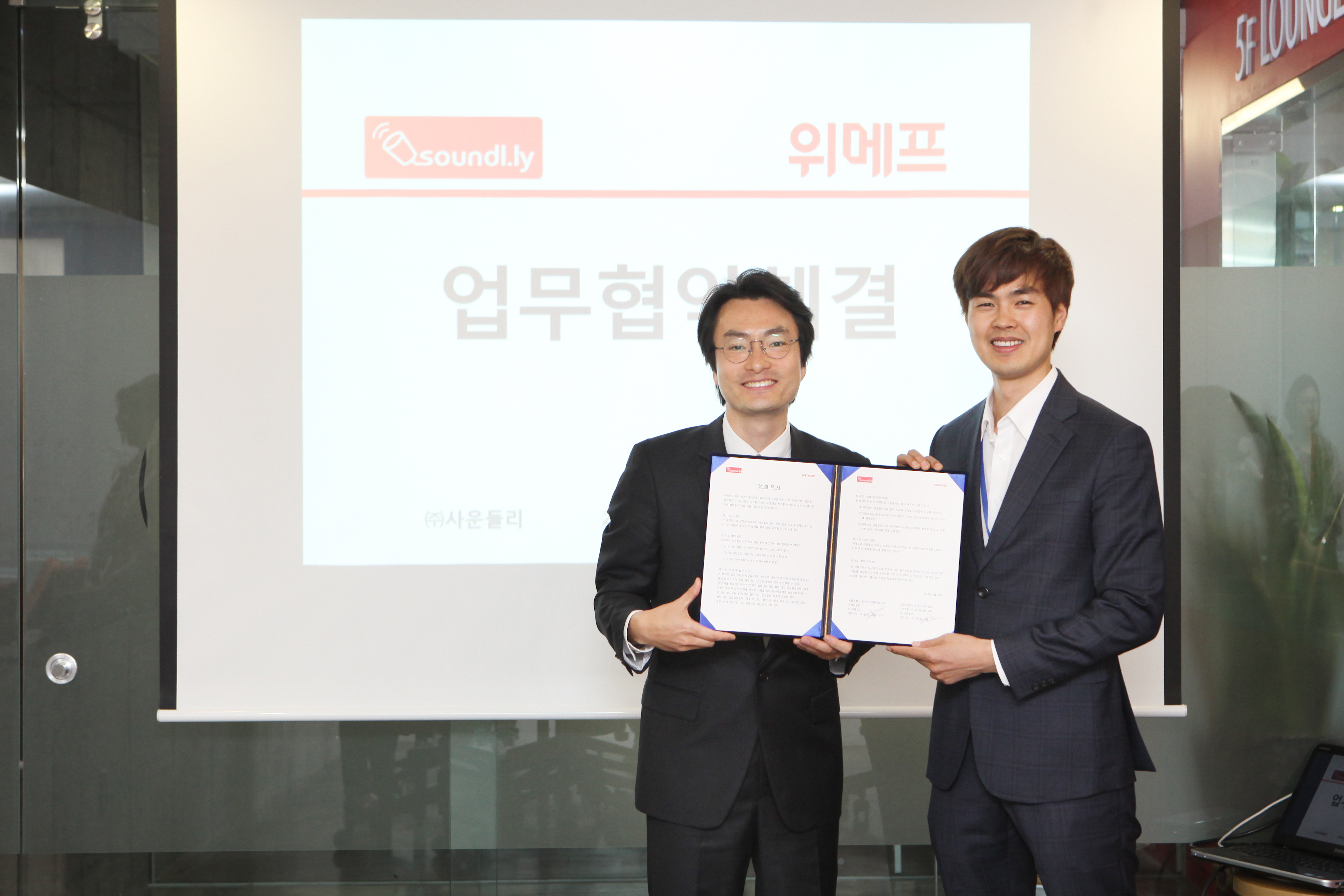 IT 스타트업 사운들리는 23일, 국내 소셜커머스 기업인 위메프와 MOU를 체결했다고 밝혔다.