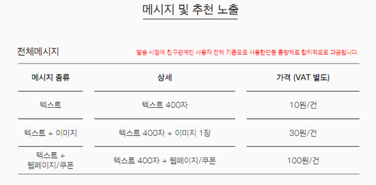 -비즈프로필은 보내는 메시지 종류 -텍스트(10원), 이미지(30원), 웹페이지 or 쿠폰(100원)-에 따라 종량제로 가격을 추가로 부담해야 합니다. 솔직히 입장에서는 부담스럽지 않나요?