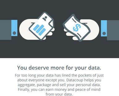 개인정보 매매 플랫폼인 DataCoup은 전세계 유일무이의 개인정보 판매 서비스이다. 개인은 서비스를 이용하여 기존에 각종 사이트나 광고주로부터 무분별하게 착취당했던 개인정보의 정당한 권리를 되찾을 수 있으며, 덤으로 판매수익까지도 얻을 수 있다. 뿐만 아니라, 소비자가 주체가 되어 어떤 정보를 판매하고 판매하지 않을지 결정할 수 있다.