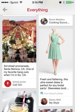 최신 트렌드가 궁금하다면 메뉴 버튼을 눌러‘인기 핀’을 방문해 보자. 최신 인테리어,패션,화장법,웨딩 드레스 룩,영화 등 다양한 분야의 현재 트렌드를 알아볼 수 있다. 카테고리 별 트렌드를 한 눈에 확인 해 보자.
