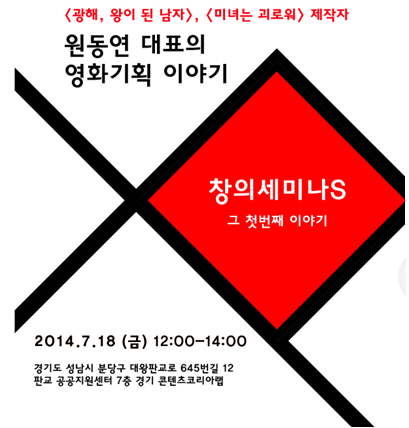 초청연사로는 <광해, 왕이 된 남자>, <미녀는 괴로워>를 제작하고 인기 웹툰 <신과 함께>의 영화화를 진행중인 원동연 제작자, 게임인재단 3D프린팅연구소장인 구성권 교수, 한국정보통신기능대학 김성필 교수가 초청되었다.
