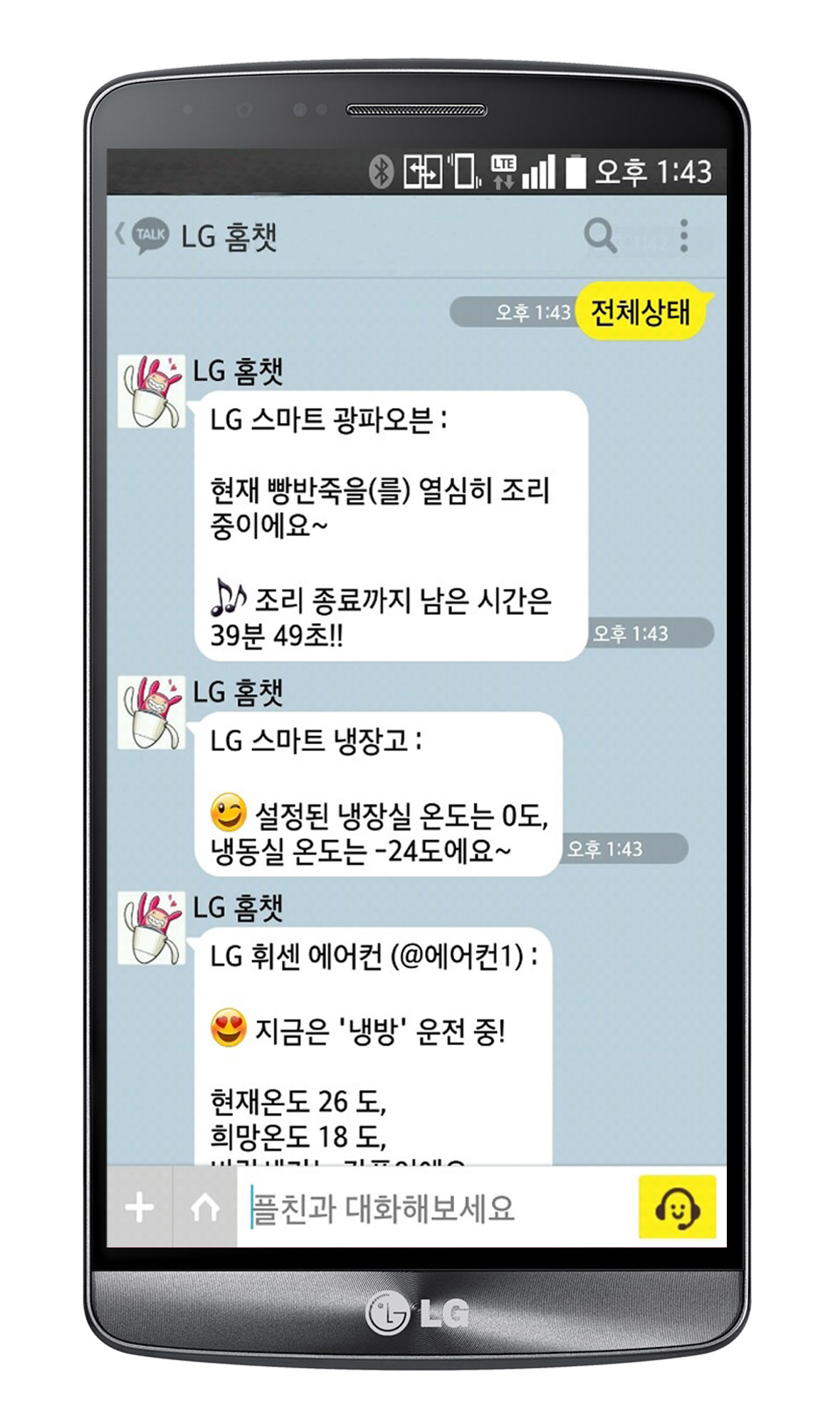 한편 LG전자는 ‘홈챗’을 지원하는 프리미엄 스마트 가전 제품군과 서비스 지역을 확대하는 등 생활 속 사물들을 네트워크로 연결해 정보를 공유하는 ‘사물인터넷(IoT, Internet of Things)’ 플랫폼으로 지속 확장해 나갈 계획이다.