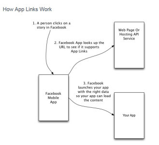 Facebook이 지난 4월 30일, F8 개발자 컨퍼런스를 통해 공개한 App Links는 모바일 앱을 연결하기 위한 Mobile deep linking 관련 오픈소스&크로스플랫폼 SDK를 의미한다. 일반적으로 Facebook에 공유된 링크를 클릭하면 모바일 웹 페이지로 이동하지만, App Link를 적용한 서비스의 경우 링크를 클릭하면 앱 내의 특정 페이지로 이동시켜 준다.
