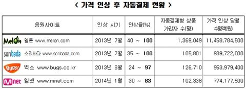 이게 어떤 말이냐 하면 다음에 가격 올릴 때는 소비자들한테 물어보고 동의를 구한 다음, 자동 결제하라는 말입니다. 아마 음원회사들 입장에서는 미치고 팔딱 뛸 일일겁니다. 그래서 요즘 서비스 개편한다고 난리인 것 같기도 하고;;