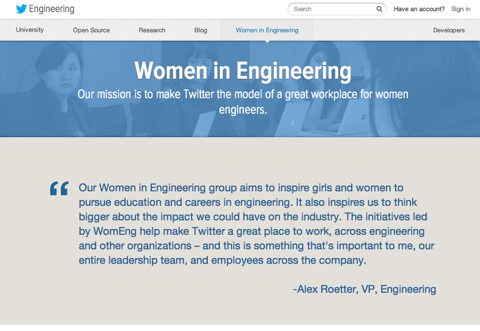얼마전 포스팅으로 소개했던 비영리 사회운동인 걸스 후 코드(Girls Who Code, 2014/07/18 – 걸스 후 코드(Girls Who Code), 이공계 성비균형 프로젝트!?)에 트위터 역시 스폰서로 참여하여 컴퓨터, 인터넷 산업으로 더 많은 여성들이 발을 들여놓을 수 있도록 많은 노력을 하고 있는 것 같습니다. 기업들이 외부로 발표한 자료만 가지고 그 회사의 진심(?)을 알 수는 없겠지만 일련의 활동을 전개하고 있다는 점은 우리나라 기업들도 한 번 눈여겨 봐야 할 부분입니다.